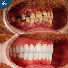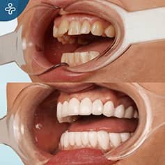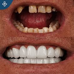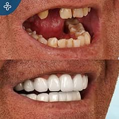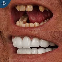 Our patient had disastrous teeth and required a full transformation, including tooth extraction, dental implants and zirconium crowns. Through orthodontics, his dental correction would have taken many years and would have been much more costly. He will never be afraid of smiling again, with full results in just 6 months with Care in Tunisia.