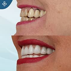With our full mouth dental implant in Turkey package deals, patients from all over the world are able to experience the same dental transformation as this fortunate patient. Take a look at the natural jawline, with perfect pearly whites. Implants allowed the best, longest-lasting results.